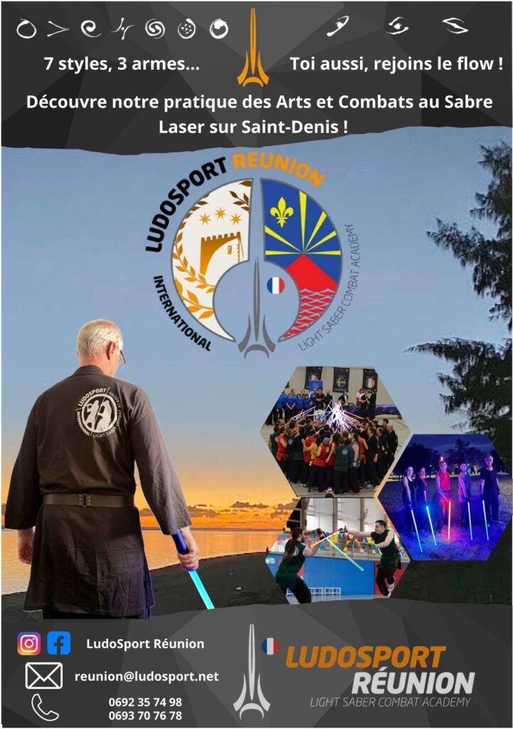Le combat au sabre laser LudoSport est une pratique sportive fun et inclusive où les athlètes peuvent apprendre jusqu’à sept styles de combats différents en maniant trois types d’armes : Long Saber : Sabre Long, Saberstaff : Le Bâton double sabre, Double short Saber : Les doubles Dagues